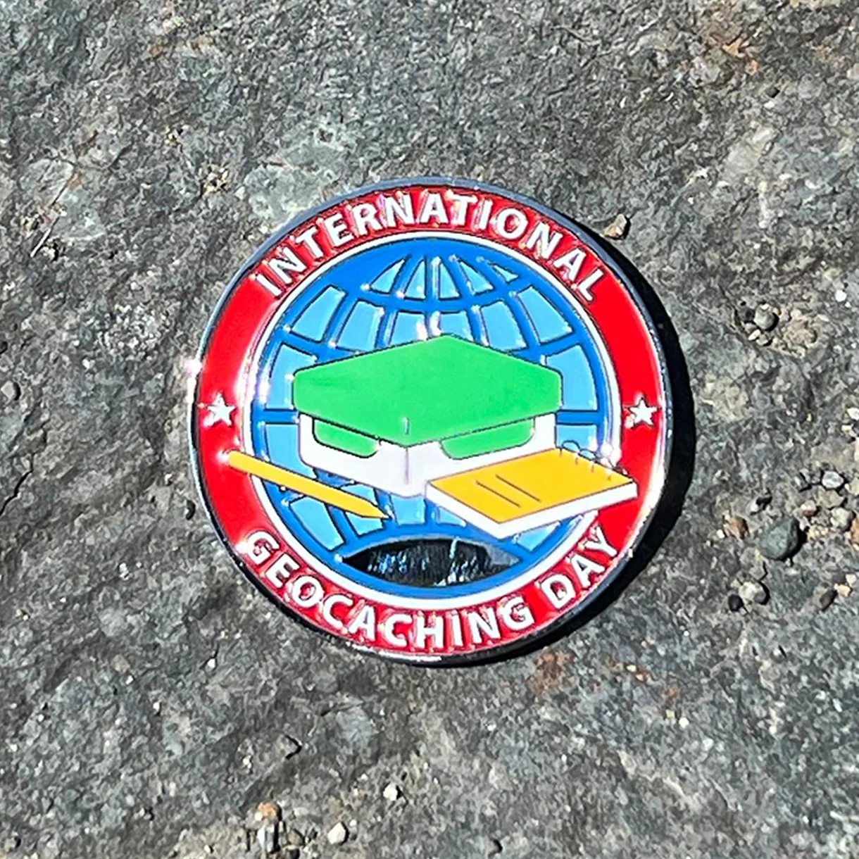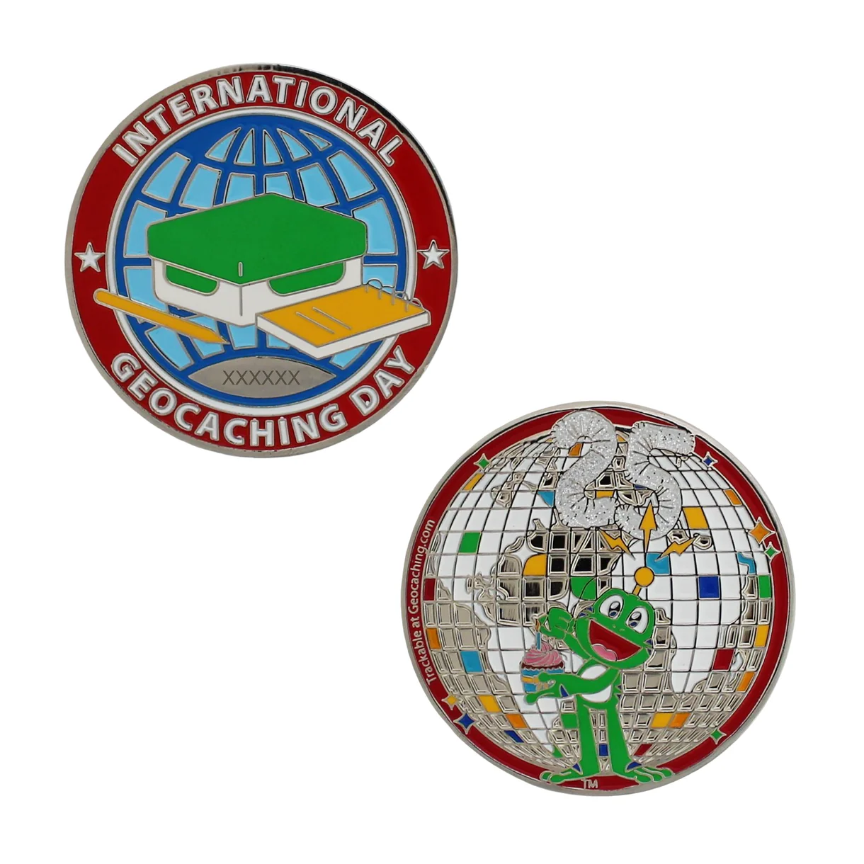 Uma ótima forma de celebrar é ganhar uma lembrança digital e também esta geocoin super gira! No dia 16 de agosto, não se esqueça de sair e jogar (registando qualquer geocache, local do Adventure Lab® ou evento) para ganhar a lembrança do Dia Internacional do Geocaching 2025!